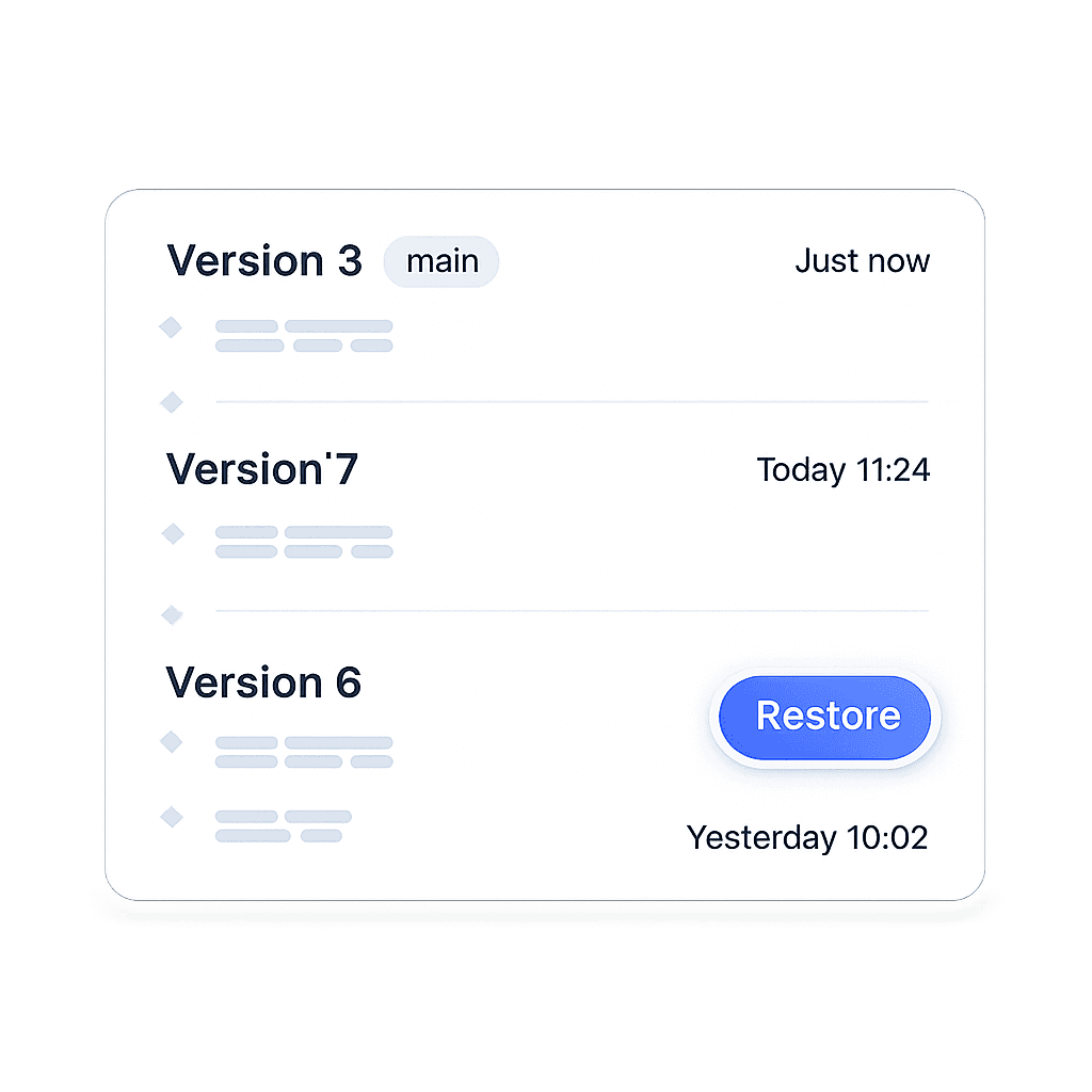 Every decision, every version, always safe. Revisit any stage of your design journey. Restore, compare, or reflect like GitHub, but for creatives.